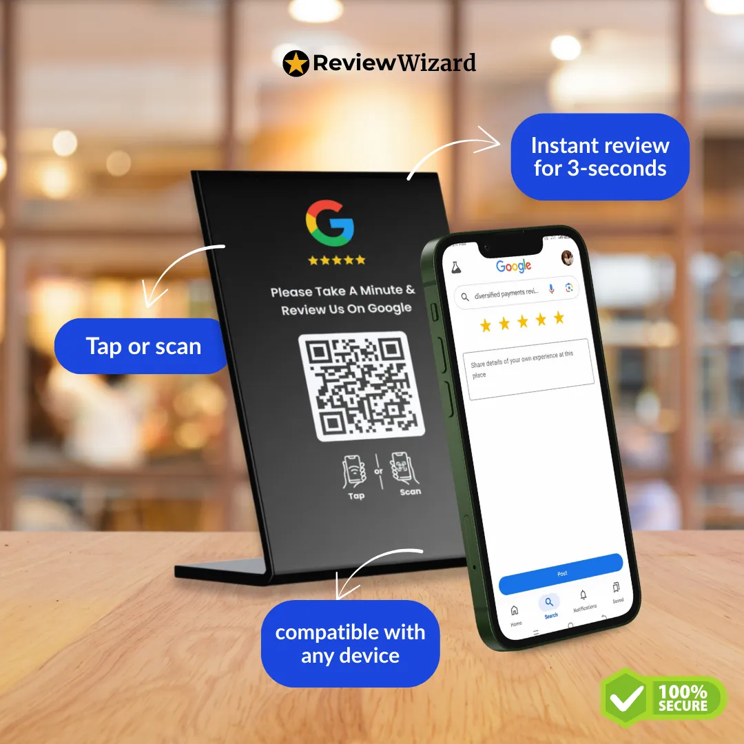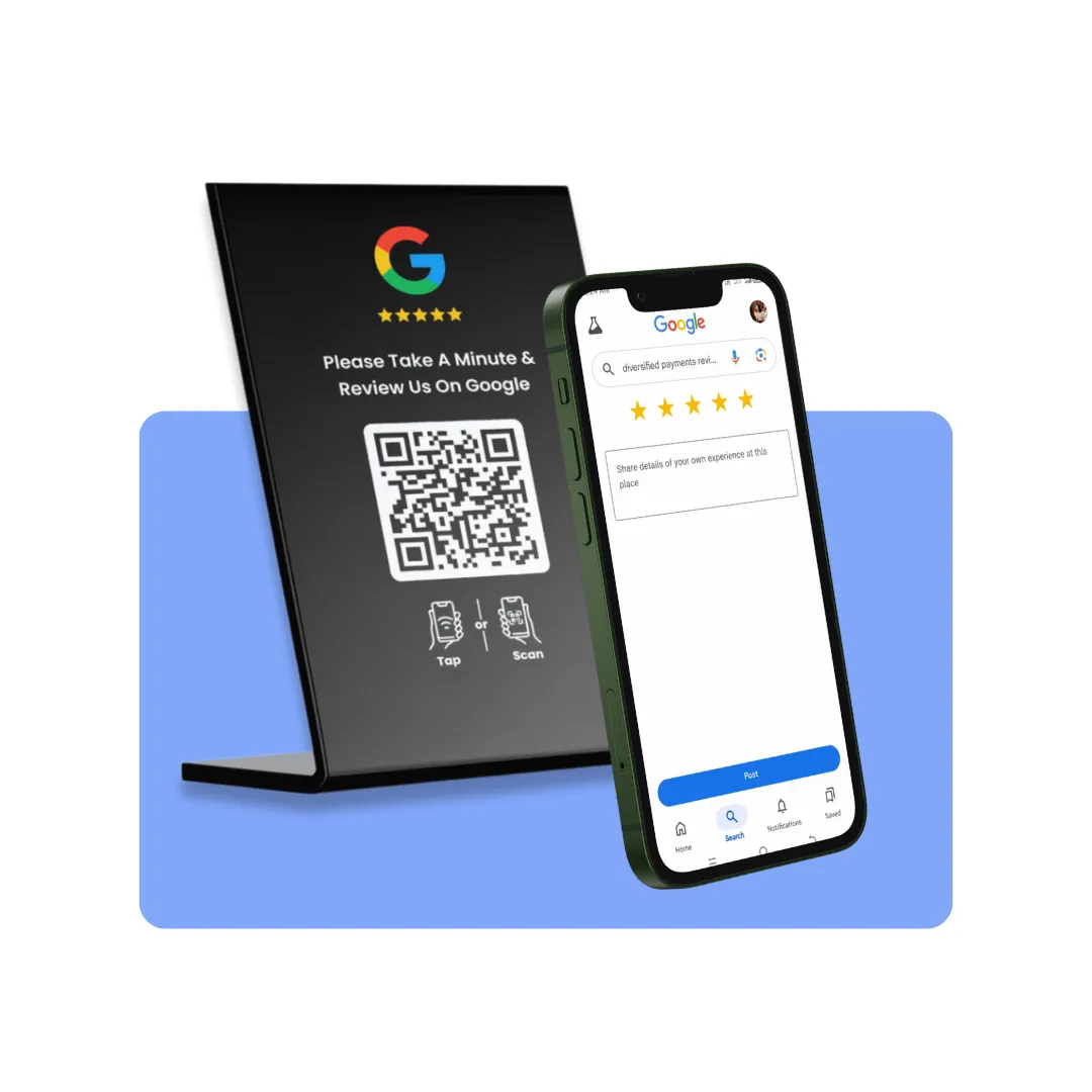 The tap or scan takes them straight to your Google Review page, no searching, no confusion.