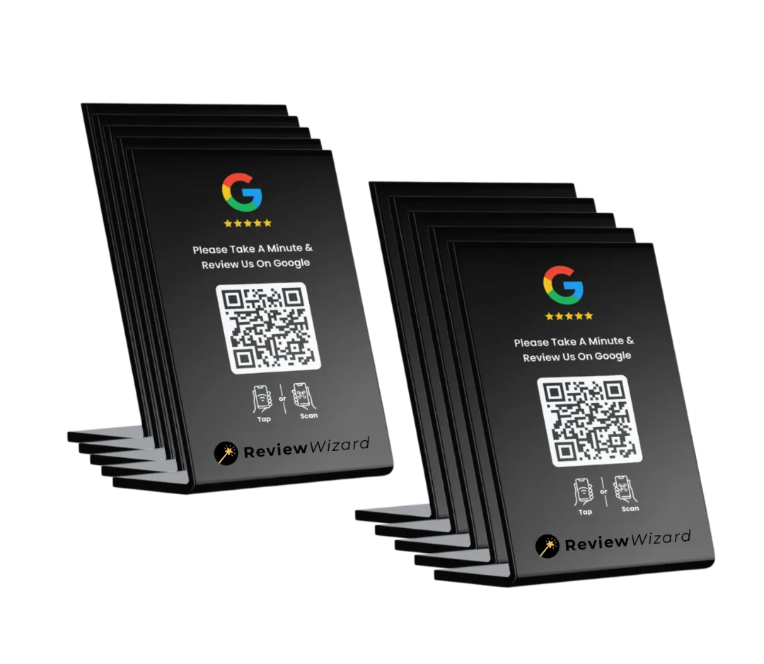 They can tap or scan the card. Review Wizard AI System cards use NFC and QR Code technology compatible with any device.